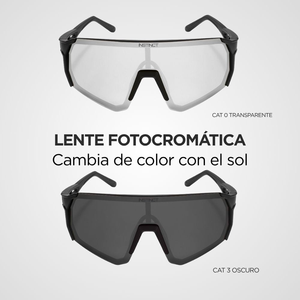 Las lentes fotocromáticas se adaptan automáticamente a la luz, para que puedas entrenar en sol, sombra o nublado con la misma claridad.